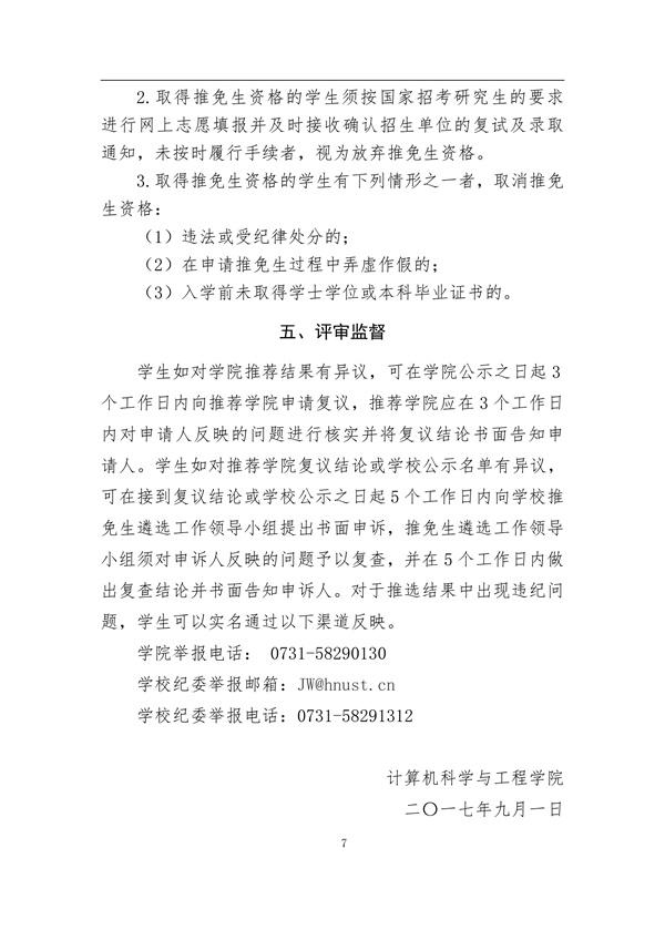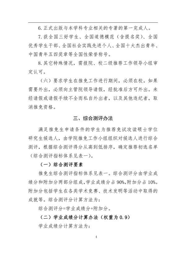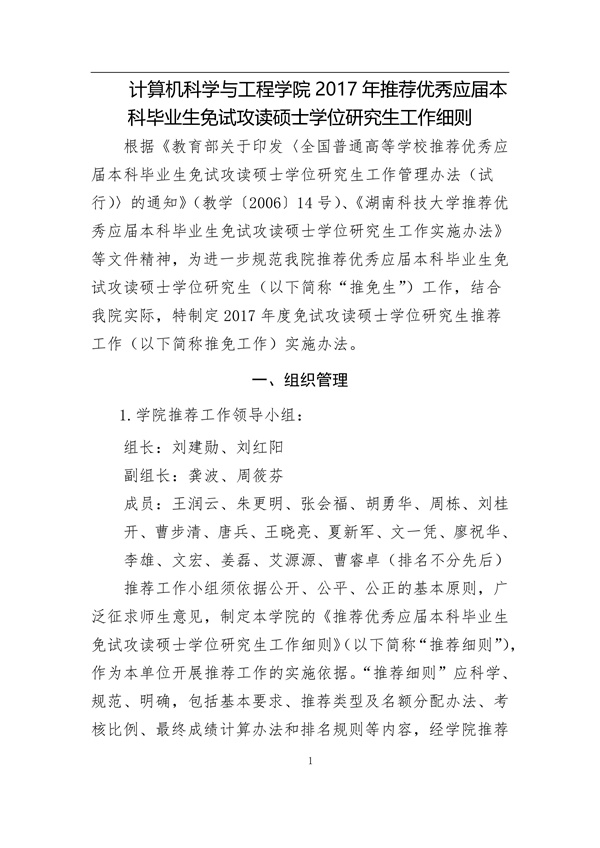 2017年推荐优秀应届本科毕业生免试攻读硕士学位研究生工作细则