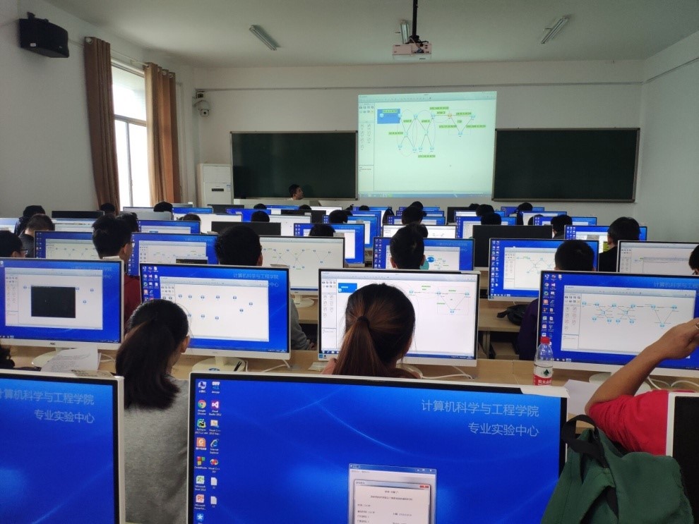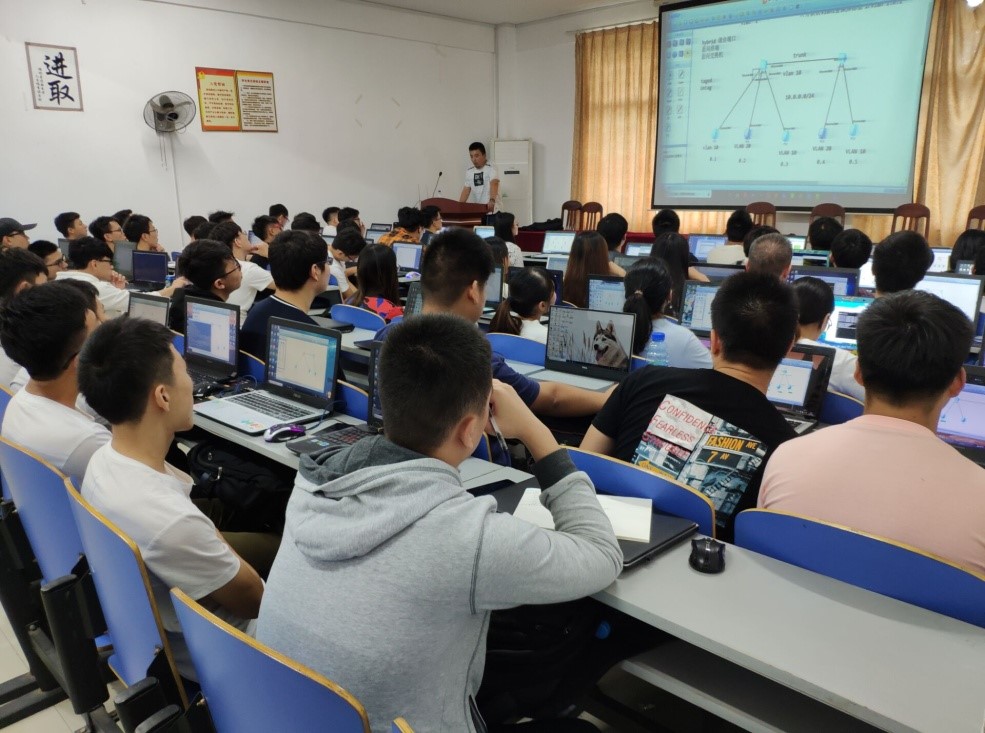 本次实训课程主要面向网络工程系学生,于9月21日正式启动开课,前后共计十余次理论与上机教学。由长沙域易科技公司的华为网络高级工程师刘老师主讲,以广州华为工程部2015年实施的广东移动OTT集成方案建设为原型,针对实际工程案例,分析原有网络故障现象和造成故障的主要原因,到后续网络改造方案的制定以及设备类型的选择、网络技术的应用和工程施工。实训课程内容覆盖网络基础知识、设备的基本管理和维护、园区网设计和解决方案、路由的选择和基本原理、互联网接入和冗余设计等。课程内容丰富多彩,每一堂课程都结合实际的项目需求,安排有大量的实际操作。将理论知识和工程项目案例紧密结合,切实提高学生的专业实践技能,提高学生对专业的认知和兴趣。同学们获益匪浅。