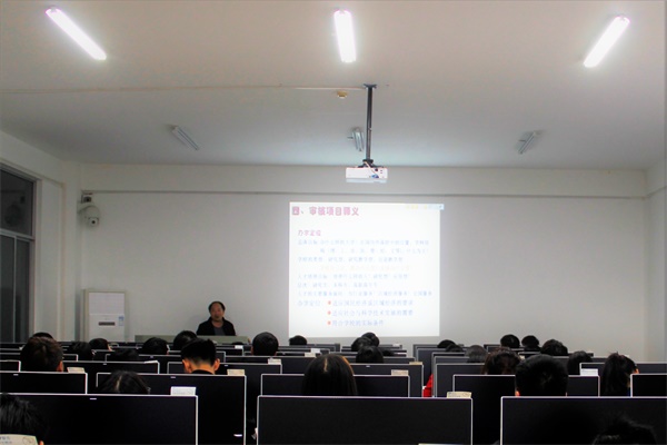 龚波就为什么要开始审核评估、什么是审核评估及意义、审核评估整体框架、部分审核项目释义以及需要我们师生员工做什么这五个方面进行了汇报。首先,龚波向同学们解释了什么是审核评估?为什么要开始审核评估?其次,重点介绍了审核评估的整体框架以及该框架所包含的评估要点与要素。通过龚波对审核评估的意义和对整体框架的阐释,同学们能够更加理解本科教学工作审核评估所带来的益处。最后,龚波针对近来日常教学检查的情况,给同学们提出了要求。