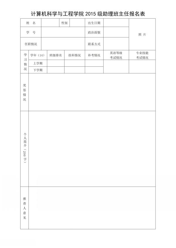 如有意向者,请认真填写《助理班主任报名表》并附带申请书一份于