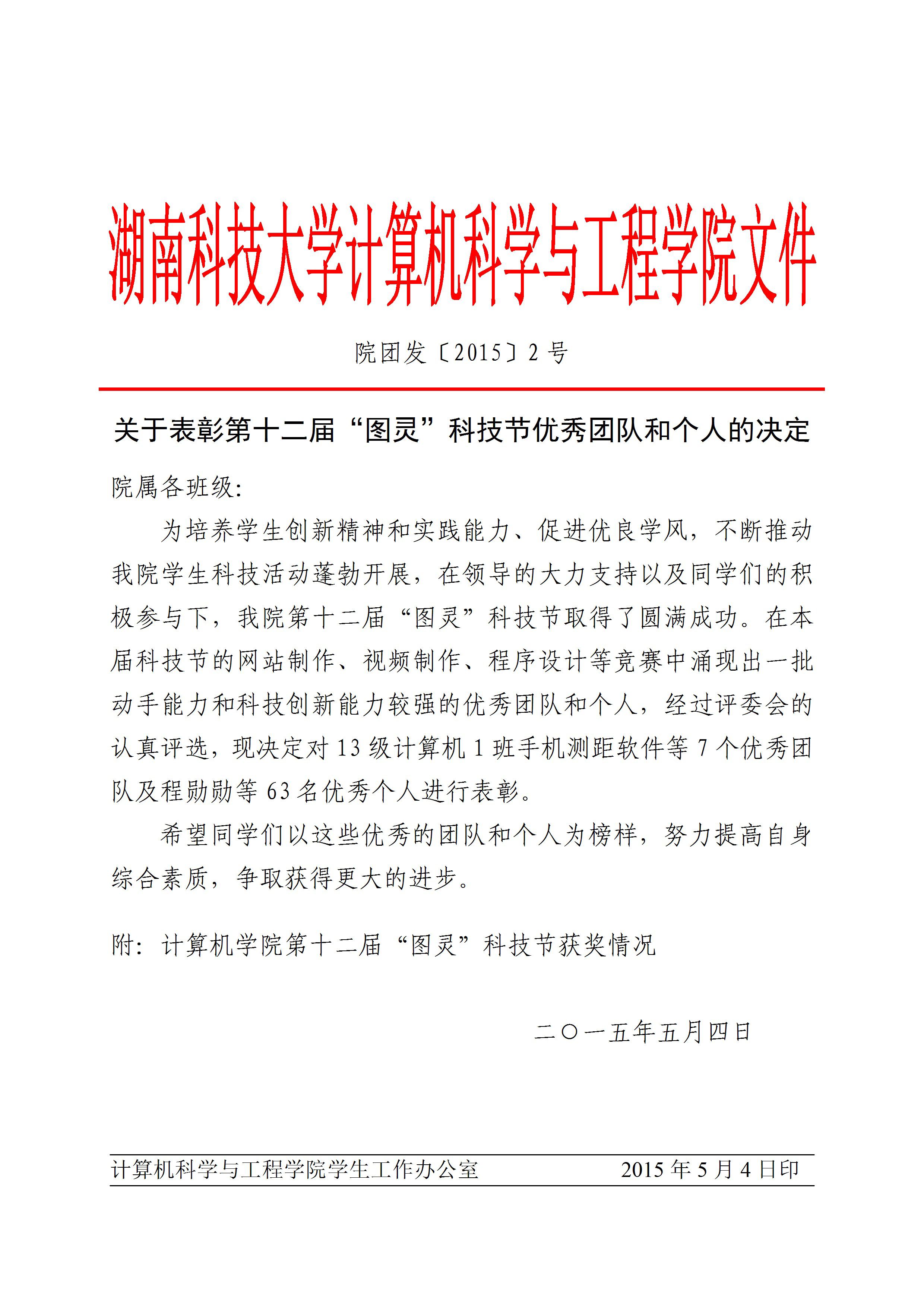 关于表彰第十二届“图灵”科技节优秀团队和个人的决定
