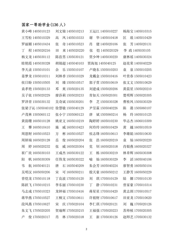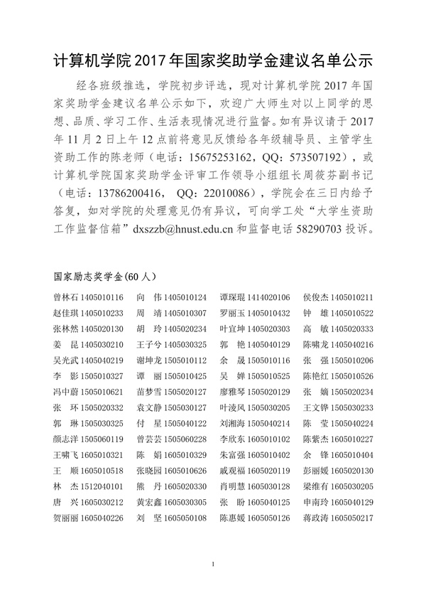 计算机学院2017年国家奖助学金建议名单公示