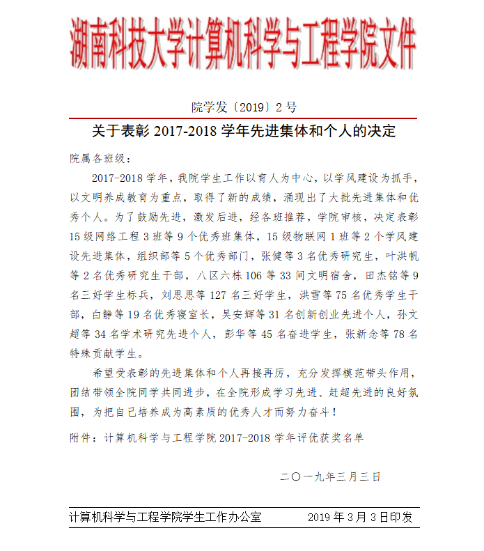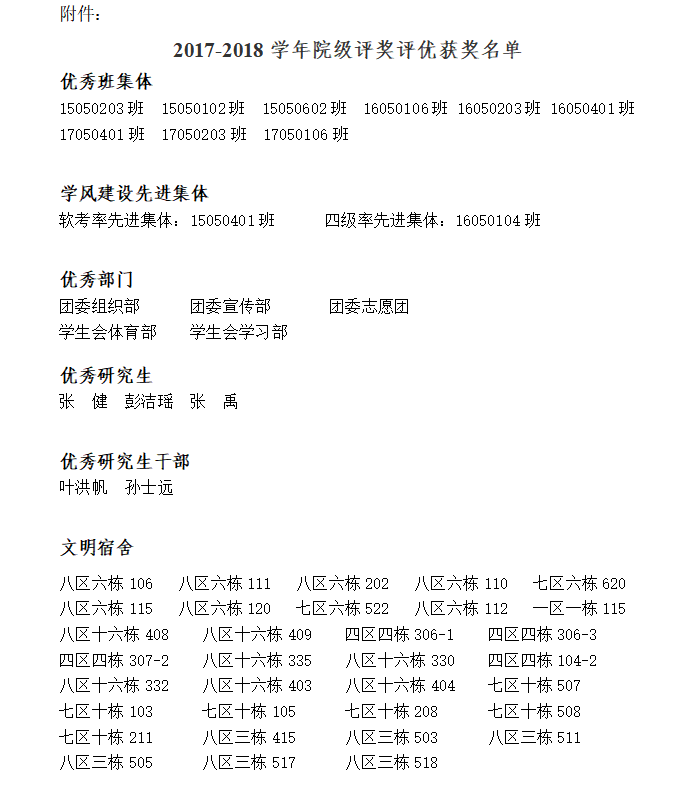 关于表彰2017-2018学年先进集体和个人的决定