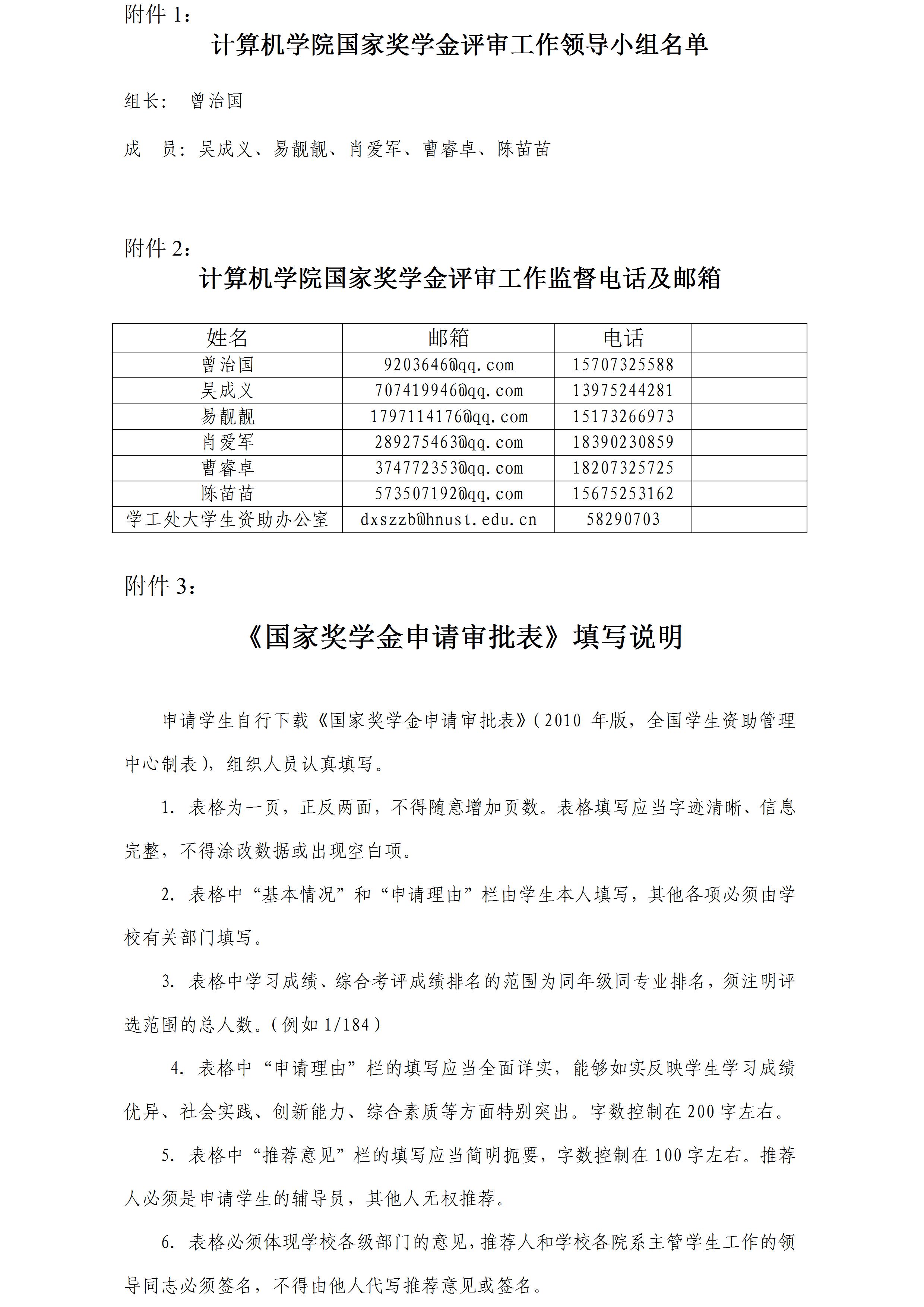 计算机学院国家奖助学金评审工作邮箱及监督电话