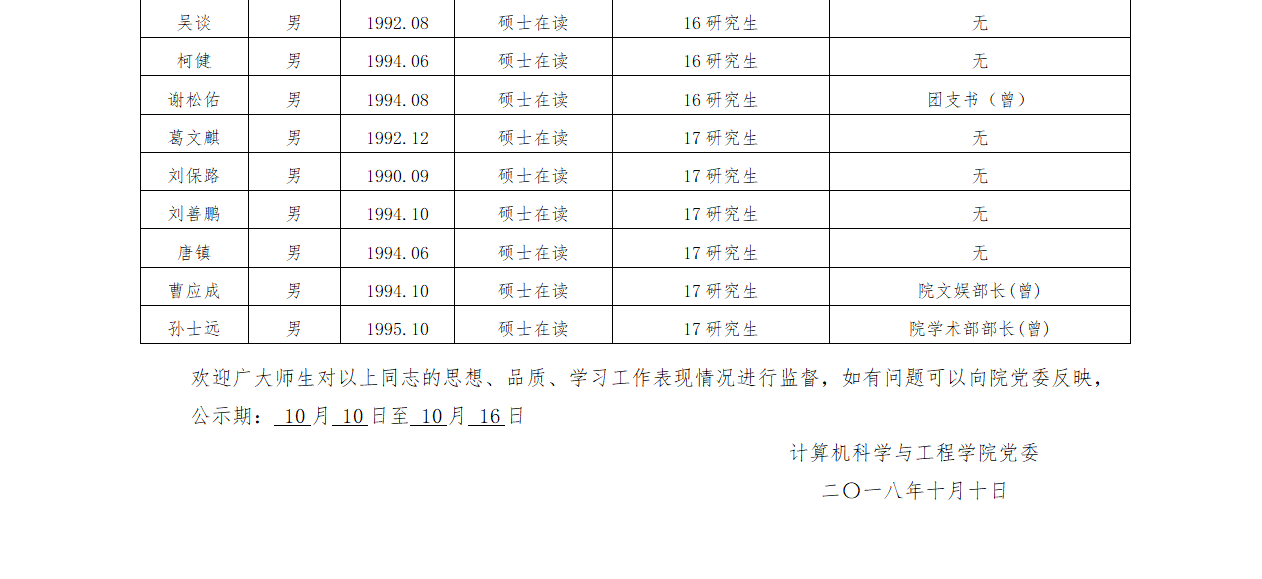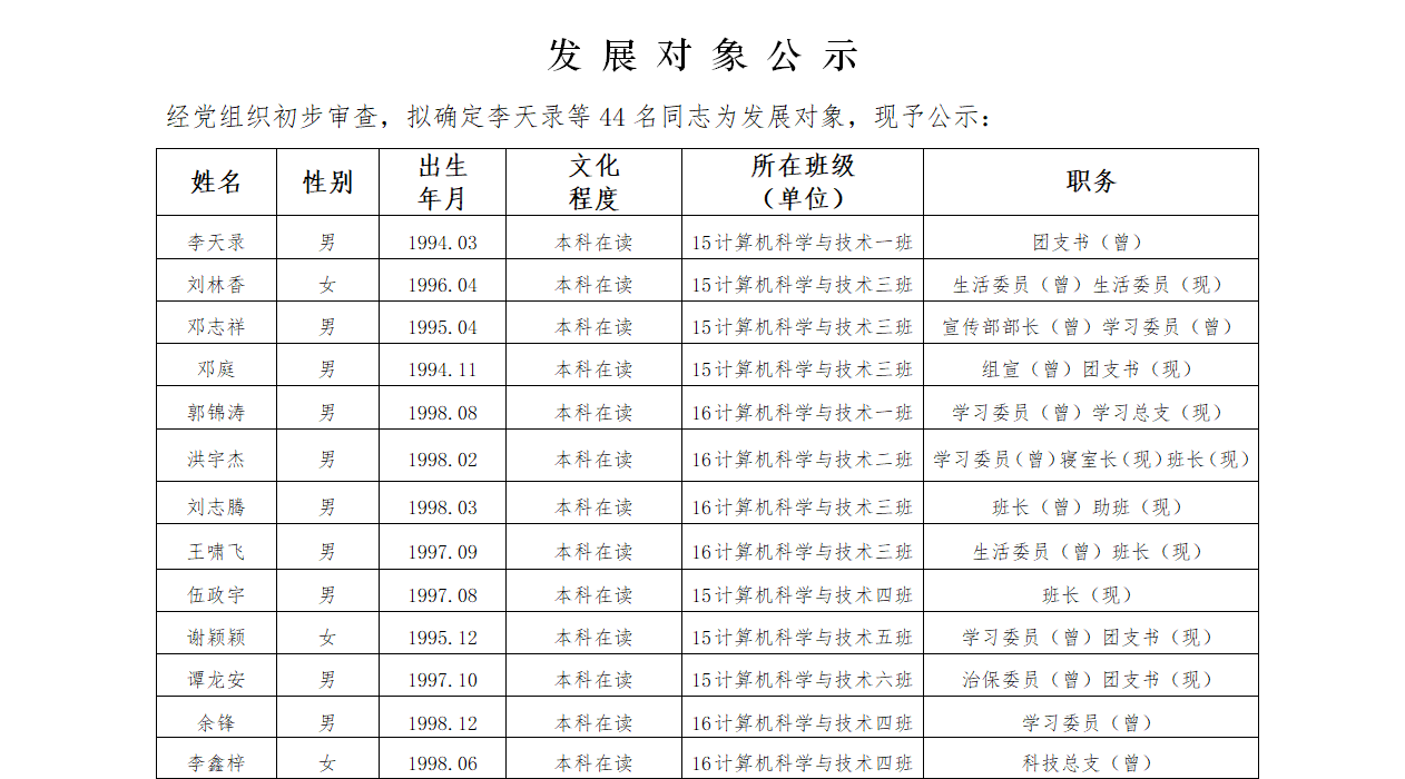 发展对象公示