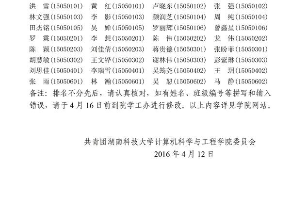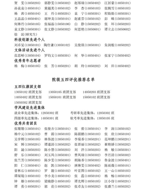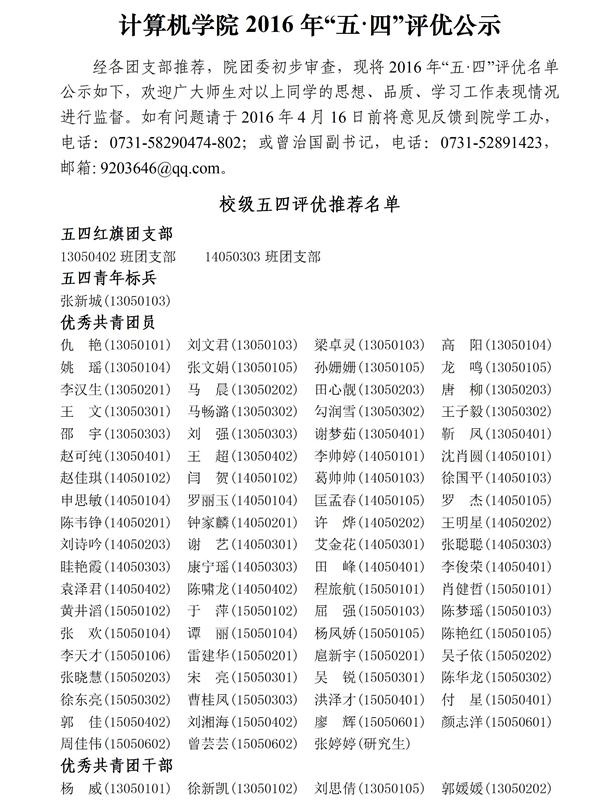 计算机学院2016年五四评优公示