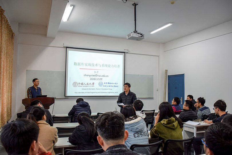 2018年12月2日上午10点,中国人民大学信息学院副院长张孝博士在逸夫楼502会议室进行了题为“数据库实现技术与系统能力培养”的精彩学术报告。tapplay官网部分教师以及30余位研究生、本科生聆听了本次讲座。讲座由tapplay,tapplay官网,tapplay登录入口副院长曹步清主持。
