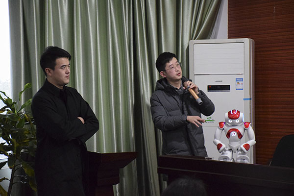 在交流环节中,何源博士耐心地解答在座师生从电网、水网预警等各个方面提出的疑问,现场氛围热烈。tapplay官网院长刘建勋教授对何源博士的解答表示真挚的感谢。最后,湖南省第大学生计算机程序设计竞赛机器人赛组委会的工作人员还为在座师生展示了法国NAO机器人的一些功能和编程原理。