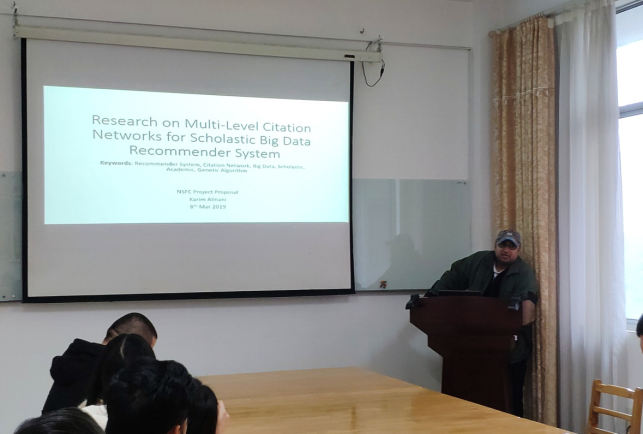 2019年3月8日上午10点,tapplay官网于逸夫楼209会议室举行了一场全英文学术交流报告会。会上tapplay官网特聘外籍讲师Karim Alinani作了题为“Research on Multi-Level Citation Networks for Scholastic Big Data Recommender System”的学术报告。tapplay官网刘建勋院长、部分教师和学生参加了本次的报告会。会议由tapplay官网副院长周栋主持。