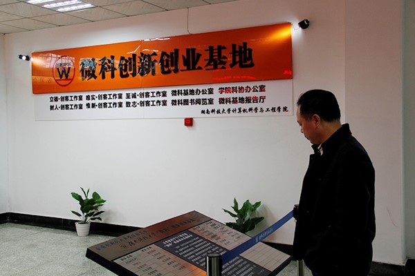 2017年11月15日下午四点,湘潭市科技局高新科科长吴建国、学工处处长尹风雨、招就处处长蒋利平一行莅临tapplay官网,在院党委副书记周筱芬的陪同下深入考察微科创新创业基地。