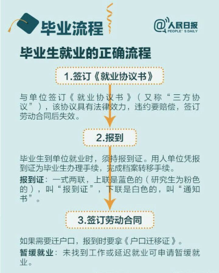 就业工作 就业指导 您所在位置: 首页 > 学生工作 > 就业工作 > 就业指导 毕业流程 时间:2021-05-19 作者:网络部 访问量: tapplay官网-tapplay登录入口 毕业流程 1.领取《就业推荐表》,交给就业单位; 2.持“接收函”或《就业推荐表》回执领取《就业协议书》(又称“三方协议”) 并登记备案; 3.学生和用人单位填写《就业协议书》,双方约定内容可填入备注,签字盖章; 4.领取《报到证》,持《报到证》去单位报到,完成档案和户口转移手续; 5.找不到工作或延迟就业可申请暂缓就业。