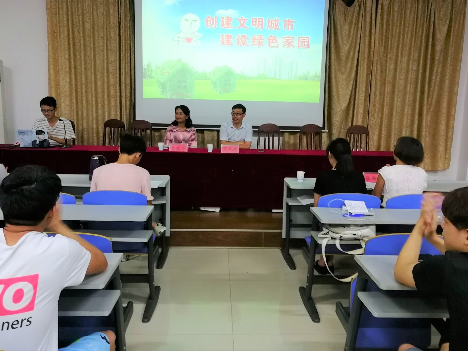9月8日晚上,校学工处处长尹风雨,院党委副书记周筱芬,辅导员老师曹睿卓、陈苗苗于逸夫楼108室参加了tapplay官网15级信息安全二班“创建文明城市”主题班会。此次班会由15级信息安全二班班长主持。
