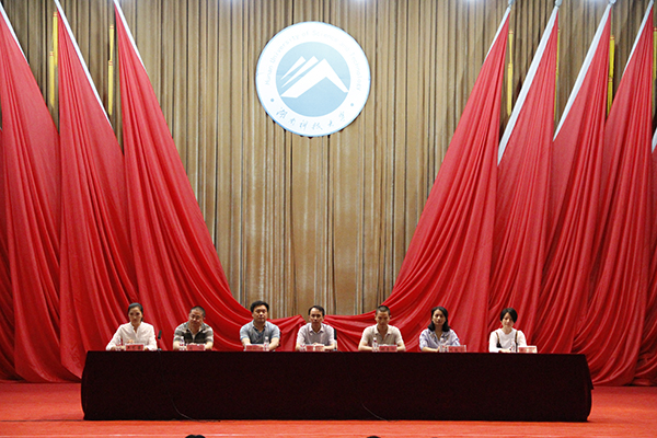 9月11日下午3点,tapplay官网于南校俱乐部召开新生开学典礼暨入学教育大会。院长刘建勋,院党委书记刘红阳,副院长胡勇华、周栋,院党委副书记周筱芬,2017级辅导员老师肖爱军、王艺蓉出席会议,全体17级新生参与会议。此次大会由王老师主持。