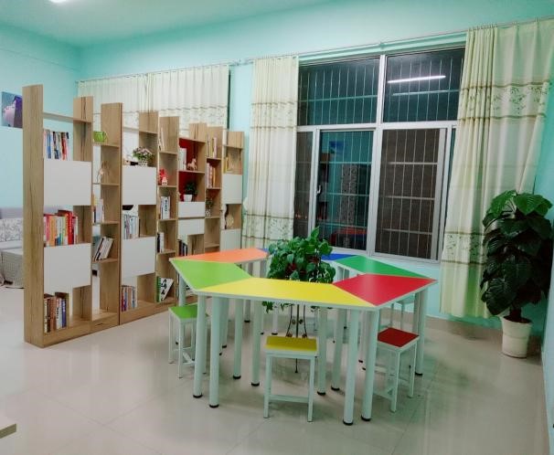 成长辅导室面积21平方,选址在逸夫楼104,距学院学工办和院领导办公室较近,便于辅导人员和院领导与学生的直接、及时沟通和交流。布置温馨,包括浅绿色墙漆、配有制度框、挂图、沙瓶画、绿萝等,配备电脑、办公桌椅、沙发、隔断书柜、咨询椅等设备,新增了棋类、孔明锁、非洲手鼓、减压拳击沙袋等娱乐减压设施,各类办公设施齐全,完善了4个功能区,共包括:预约区、个体辅导区、阅览区和小团体辅导区,便于成长辅导的顺利开展。