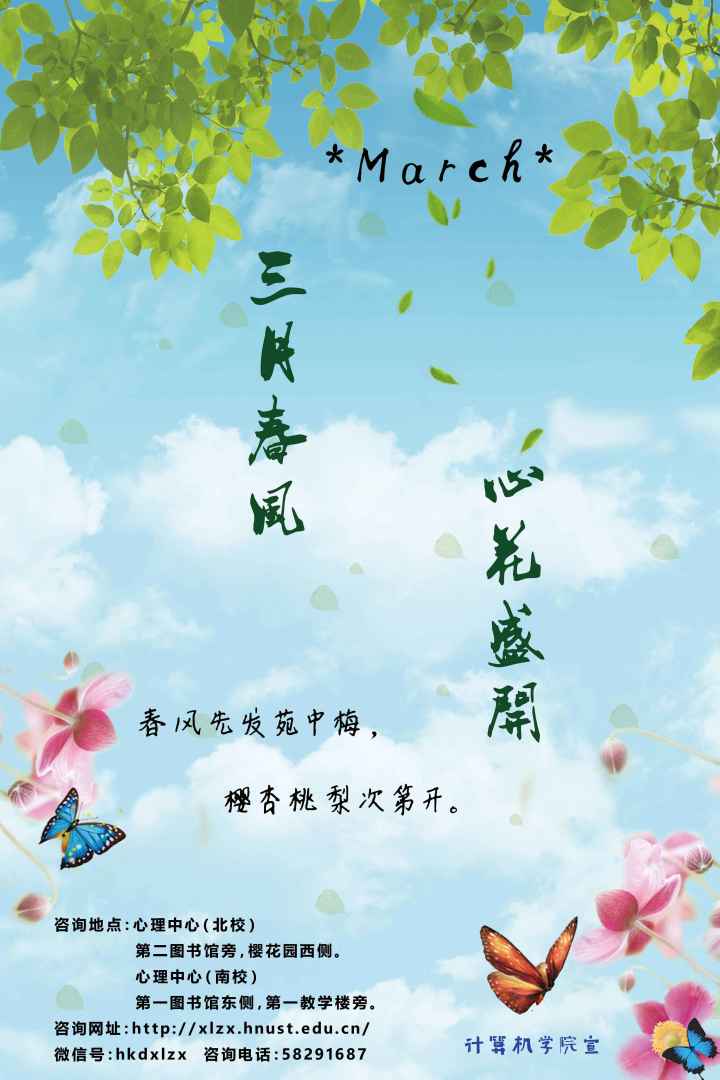 心理健康 心理海报 您所在位置: 首页 > 学生工作 > 心理健康 > 心理海报 心理海报(17年.03月) 时间:2019-03-07 作者:心理健康部 访问量: tapplay官网-tapplay登录入口 *March* 三月春风 心花盛开 春风先发苑中梅,樱杏桃梨次第开。