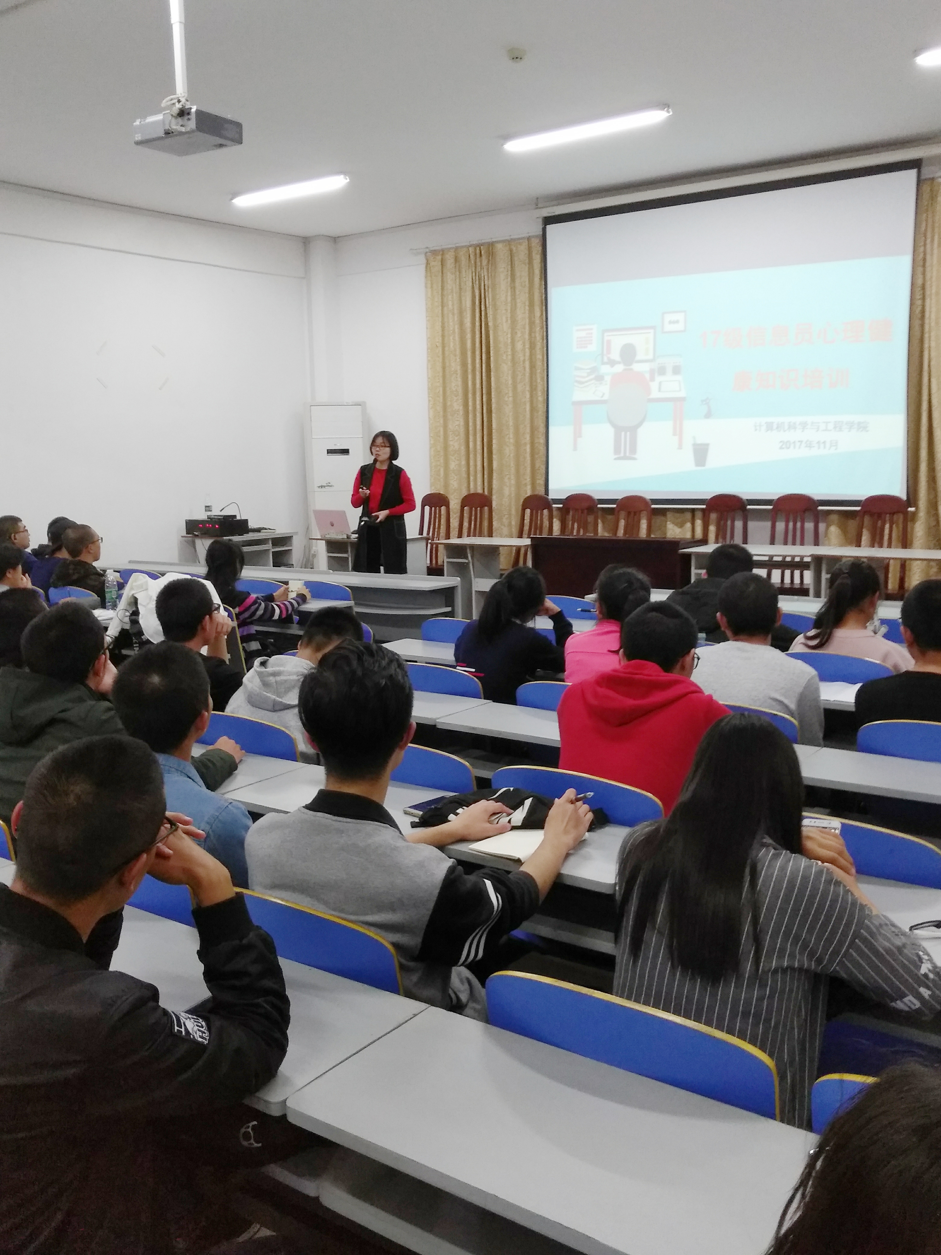2017年11月3日19:00,心理辅导员陈苗苗老师在逸夫楼108为tapplay官网2017级主要学生干部和全体寝室信息员开展了心理健康教育知识和危机预防知识培训。