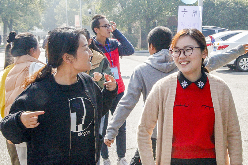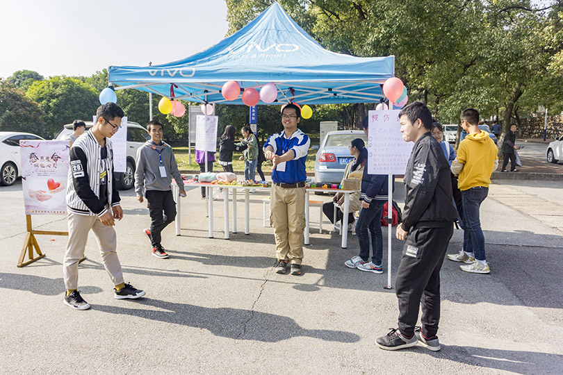摆点当天正值骄阳,也正是炎炎烈日点燃了师生们参与活动的激情。此次摆点活动为了让同学们能从多方面认识自己,一共设置了“模仿达人、灵魂舞步、卡牌接力”三个游戏。活动伊始,周筱芬和陈苗苗身体力行,通过参与游戏拉近了与同学们心灵上的距离,也表现出了与平常不一样的风采。随后的环节,同学们的兴致逐渐高涨,游戏中各出奇招,只为展现出属于自己青春的无限活力。在模仿达人的游戏中,下腰、单手俯卧撑、公主抱等动作更是让同学们惊叹不已,现场欢呼声源源不断,气氛被持续推向高潮。最后,周筱芬对本次活动的成功举办表示肯定。她希望同学们能够不忘活动的初衷,从“心”开始健康成长。