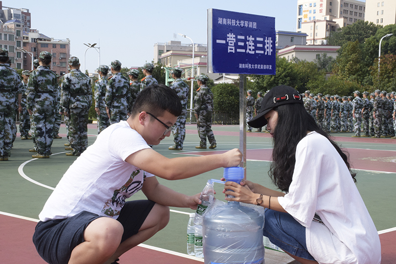 “助班辛苦了!”每次收操前,新生们总会发自肺腑地喊出这句话。军训期间,助班们每日起早贪黑地陪伴着新生们,看着他们训练,照顾他们作息,无微不至的关怀和背后无闻的付出真正感染了这一群略带稚气的青年。“一天到晚陪着他们一起军训,虽然很累,但看到他们在锻炼过程中不断成长,一点一点地进步。在心中也会有所欣慰,觉得这是一件很有意义的事吧。”18级计算机科学与技术四班的助班王海力谈到军训,颇有感触。