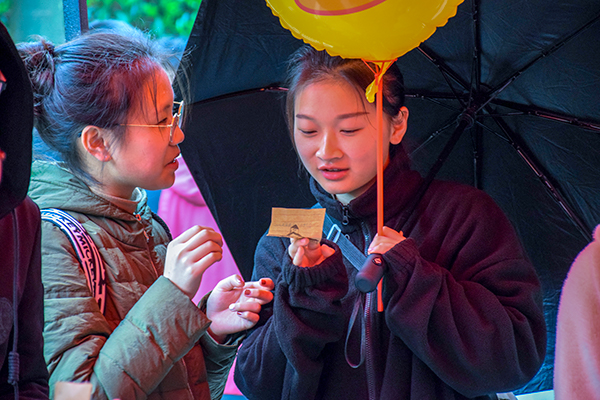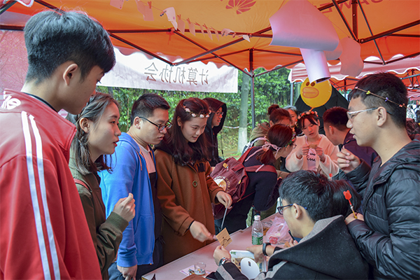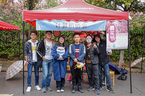 本次活动通过官Q进行了前期宣传,tapplay官网计算机协会还精心准备了积赞领礼品活动,吸引了不少同学特意来到摆点现场参与活动。此外,摆点现场还准备了“夺镖达人”、“樱花之秘”、“樱语似我心”、“樱之秒速五厘米”四个以樱花命名的小游戏。其中“夺镖达人”深受同学们的喜爱,同学们参与度极高。“入库要慢,打一计算机名词”、“樱桃花下送君时,打一句诗”、“现代计算机的基本工作原理是什么”,阴雨绵绵的天气,也不阻同学们参与活动的热情,大家争相参与答题,活动现场热闹非凡。