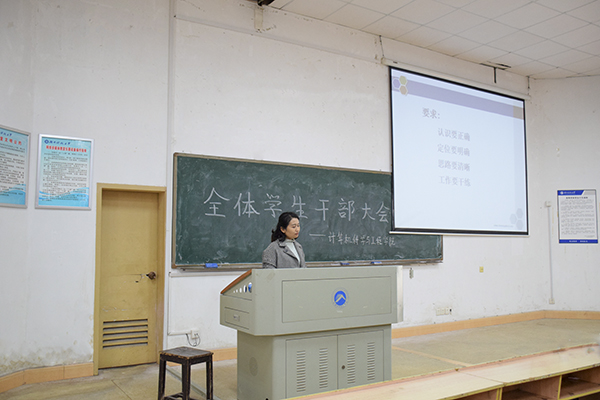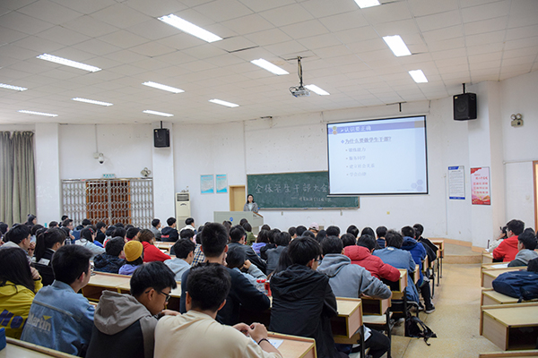 4月12日12点40分,tapplay官网于第五教学楼2-6教室召开全体学生干部培训大会。tapplay官网党委副书记周筱芬,团委书记王艺蓉,辅导员魏庆龄出席,tapplay官网全体学生干部与会。本次会议由周筱芬主持。