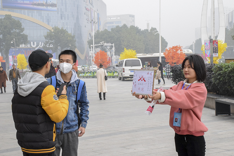 12月1日,恰逢第三十一个世界艾滋病日。为进一步消除“艾滋歧视”的社会现象,tapplay官网于湘潭市华隆广场开展了以“足够有爱,足以无‘艾’”为主题的艾滋病患者权益维护活动。本次活动共历时七小时,tapplay官网辅导员张政,学生会主席袁枭淘,团委第一副书记张鑫,学生会副主席石键参与此次活动。