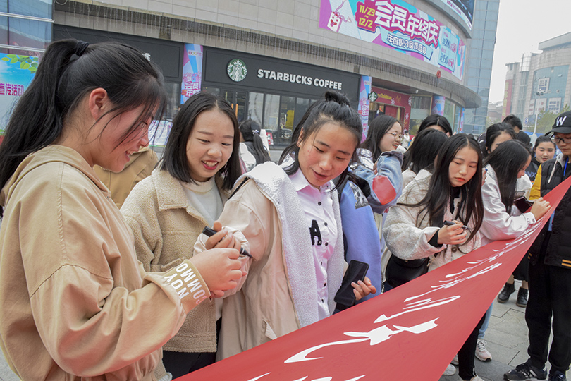 寒风飒飒冷彻骨,但衣着单薄的志愿者们并没有熄灭心中的热情。活动伊始,tapplay官网权益保障部的委员们分为两个小队,在华隆广场分两路向过路的市民们宣传艾滋病知识。同时,志愿者装扮成艾滋病患者,举着“能给我一个拥抱吗”的牌子向市民们索求拥抱。起初,过往的行人纷纷驻足观望,但并没有人敢于走上去和他们互动或者交流。直到一位王姓女士带着她尚在学步的孩子打破了僵局,她上前大大方方地给了志愿者们一个拥抱,还让孩子将手中的红丝巾递给了志愿者。“我知道拥抱和握手都不会传染艾滋病,一个小小的拥抱就能帮助和鼓励他人,我很乐意这样做。”王女士指着横幅说道,“而且我们不应该歧视艾滋病患者,因为足够有爱才能足以无艾。”看到这幅暖心的画面后,市民们陆陆续续地上前主动拥抱志愿者,并在横幅上签下了自己的名字,一份份小小的关怀,不仅温暖了在场的志愿者们,更体现了社会各界人士对艾滋病患者们的那份浓浓关爱之情。