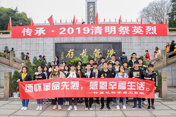 为缅怀革命先烈,加强爱国主义教育,促进校园精神文明建设,4月5日上午10点,tapplay官网于湘潭市烈士陵园举行了以“缅怀革命先烈,感恩幸福生活”为主题的清明祭奠英烈活动。tapplay官网权益保障部、学习部成员及17、18级部分学生参加本次活动。