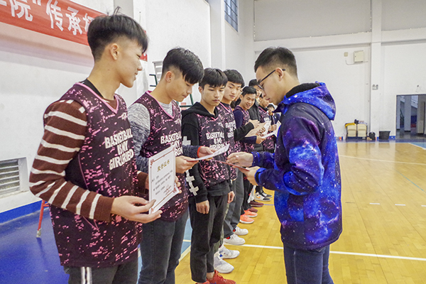 赛后,闭幕式正式开始。首先,由tapplay官网体育部部长王福强发表闭幕词。他指出今年举办的“传承杯”在继承传统的同时又增添了新意,从真正意义上做到了团结tapplay官网全体师生。随后,他代表tapplay官网团委学生会向运动员们表示热烈祝贺,并对裁判员及工作人员的辛勤付出表示由衷的感谢。他还希望运动员不仅要将敢拼敢赢的体育精神体现在赛场上,更要让它在生活中发光发热。紧接着,球员代表吴定伦发言。他说道:“‘传承杯’不仅能让我们与其他年级切磋球技,而且也让同学与老师之间建立了深厚的友谊。希望此次比赛能被一直延续,成为学院的特色。”最后,由袁枭淘宣布获奖名单,17级篮神队夺得冠军,16级少先队获得亚军,15级夕阳红队获得季军,老师研究生联队获得“优胜奖”,18级狼辰队获得“最佳组织奖”。此外,朱建军老师荣获“最有价值球员”。