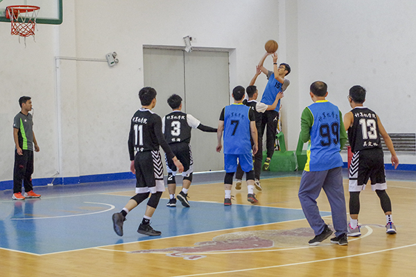 尖锐的哨声刺破寒空,15级队与老师研究生联队的角逐正式开始。比赛伊始,凭借着精妙的团队配合,老师研究生联队不断拿分,获得了领先。但随着时间的流逝,老师研究生联队的体力逐渐下降,比分不断被缩小,最终以47:52的比分憾负于15级队。