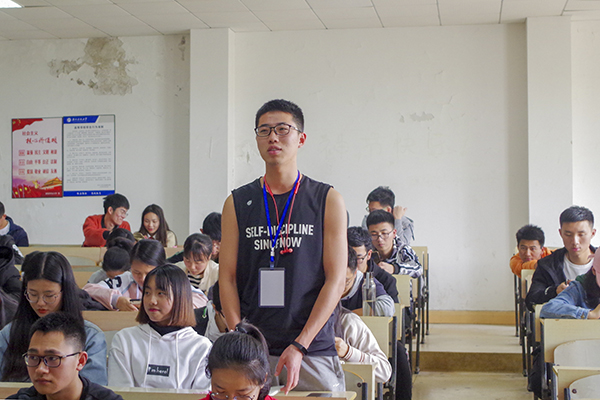 期间,朱槿曦还通过组织九宫格小游戏引出了“81192”事件,她邀请同学们一起观看了“81192”事件主人公王伟的视频。视频结尾,王伟的牺牲奉献感动了在场所有人,18级软件工程二班的李广乐发表了自己的感想:王伟的行为或许正是对五四精神的完美诠释,履行职责、勇敢无畏,我们应当向他学习,为人民、为祖国奉献出自己的一份力量。