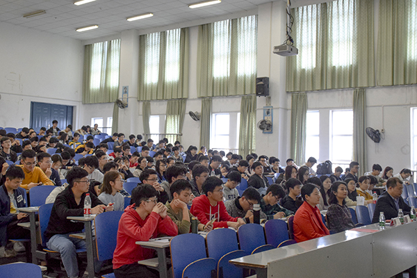 而后,在大家的掌声中,朱建炜正式展开此次讲座。首先,他借用冰山的例子进行了自我介绍,就知识、专业绩能、综合能力、个性特征、动机、价值观、综合能力等各方面进行了自我介绍。朱建炜让在场的同学们设计了一张用于10年后同学聚会的名片,充分的调动了同学们的积极性,更为之后的讲座内容埋下了伏笔。朱建炜说,在个体变化中,只有通过增加个人的适应力让你做好充分的资源准备,才能应对环境的变化。朱建炜向大家介绍了职业导向与就业导向两种职业定位的思路以及职业定位的方法,通过介绍行业、组织、职位三个方面让同学们了解了当今社会人才需求标准。朱建炜跟大家分享了从工作中分享幸福感的三个层次及生涯观点,最后,他总结道:“我们拥有一个最宝贵的资源——时间,请大家用有限的时间来规划一个精彩的人生,成就一个更好的自己。”