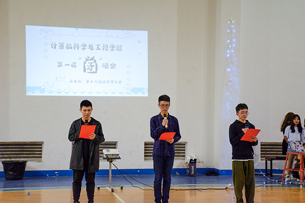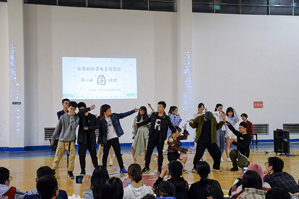 为本次晚会拉开序幕的是由16、17和18级年级总支带来的《夜空中最亮的星》,他们用歌声告诉大家,要永远年轻、永远好奇张望,不忘初心努力地追逐梦想。第三个出场的权益保障部带来了改编歌曲《北京东路的日子》,他们融入计算机的元素,用一个ppt讲述了这一年的经历,感动之余,亦让我们真切感受到他们为了学生权益所付出的努力。而后,宣传部用“新闻播报”的方式将女生节、考试作弊、国潮女生走秀三个场景还原得淋漓尽致。体育部和就业服务部则采用男扮女装反串的形式,别开生面地演绎了白雪公主的曲折爱情及罗密欧与朱丽叶的凄美故事,将本次晚会的气氛推至高潮。
