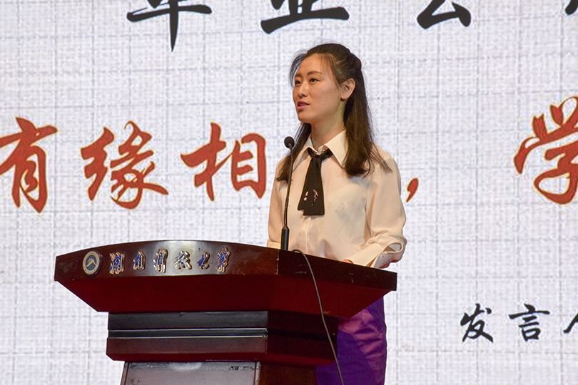 在大学的四年中,曹睿卓对14级的13个班级有着独有的记忆,和毕业生们有着一段美妙的缘分。她在课上讲述了她与毕业生们的故事,同时她也对同学们提出三点希望:希望同学们珍惜身边的人;珍惜拥有的机遇;珍惜光阴。