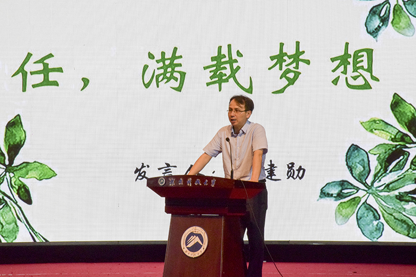 石键则是在课上表达了自己对大四的学长学姐的祝福:生活不止眼前的苟且,还有诗和远方。他希望学长学姐们不忘初心,带着IT学子质朴拙诚的品质登上人生的高塔,前路万里晴空,鸟语花香。他也希望同学们学习学长学姐们那脚踏实地的拼搏努力和坚持不轻易说放弃的精神。