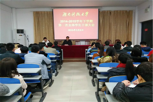 3月8日下午6点半,tapplay官网在逸夫楼108室召开2014-2015学年下学期第一次全体主要学生干部大会。院党委副书记曾治国、学工办主任吴成义、辅导员老师易靓靓、肖爱军、曹睿卓出席,院团委学生会全体学生干部及各年级班长、团支书参加了本次会议。