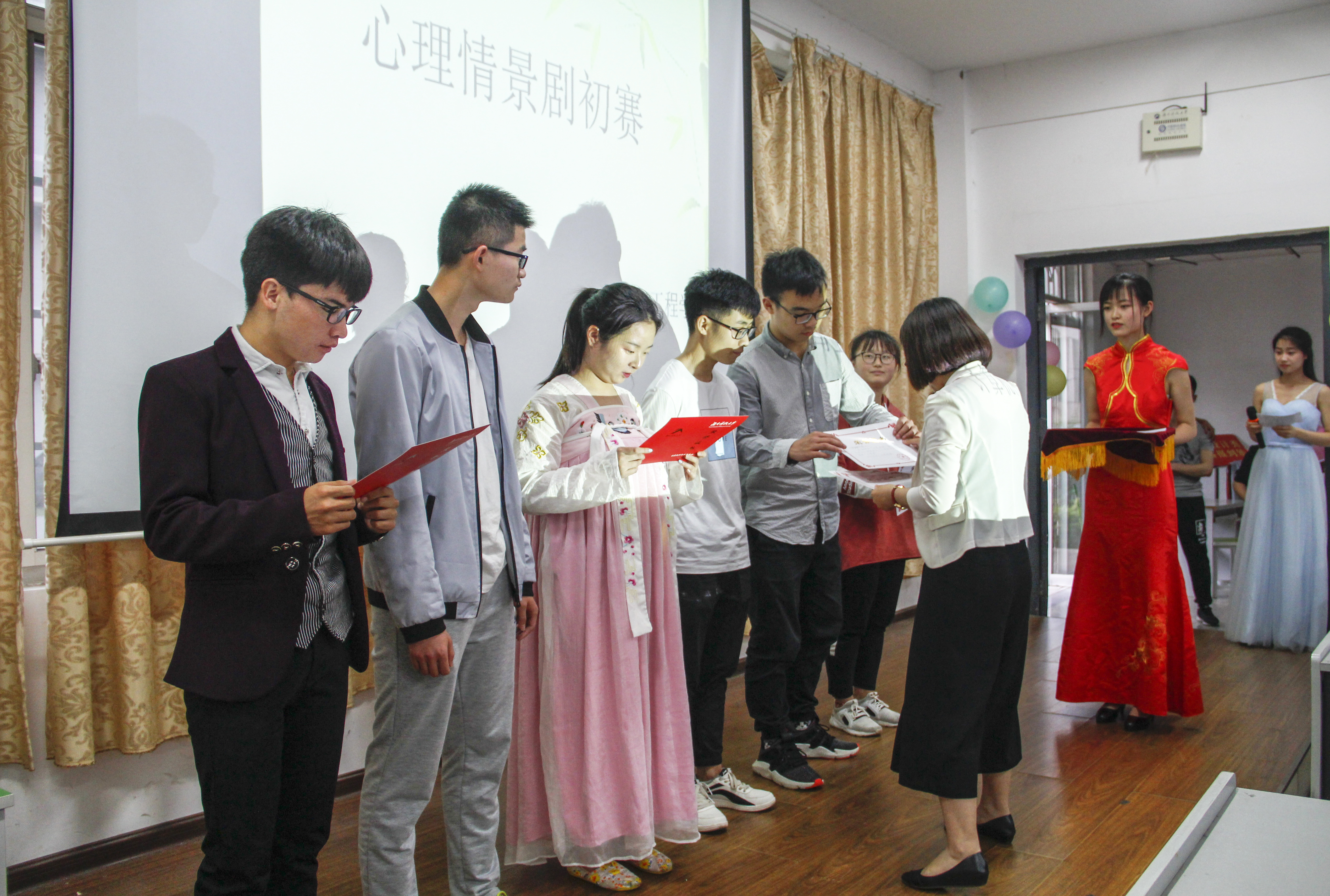 为引导广大同学进行自我展示,促进学生素质的全面提高。4月20日下午3点,tapplay官网在逸夫楼108举办了以“心灵展翅,健康携行”为主题的“亲子关系”心理话剧初赛。tapplay官网党委副书记周筱芬,学工办负责人陈苗苗,辅导员老师曹睿卓、王艺蓉、张政以及团委学生会主席团作为评委出席本次比赛。