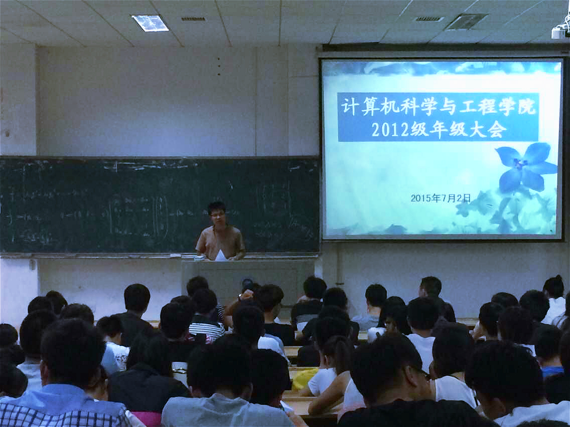 7月2日晚,tapplay官网2012级期末年级大会在五教2-2室召开。负责学院就业工作的学工办主任吴成义、12级辅导员老师易靓靓以及12级全体学生参加了本次大会。