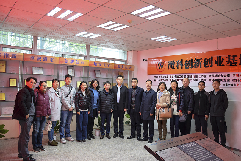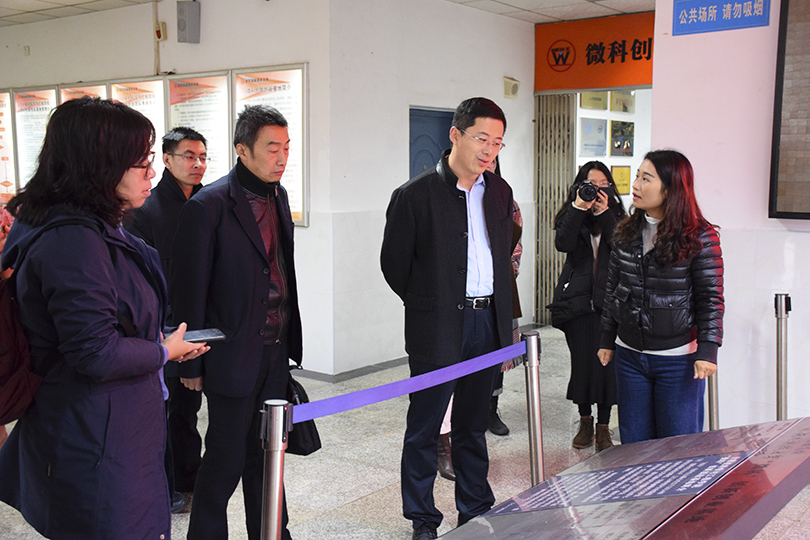 在周筱芬的带领下,北京高校就业指导中心一行人首先参观了tapplay官网微科基地成果展示区,了解到tapplay官网微科基地的基本情况及所取得的成绩。而后,领导们参观了微科逐梦办公室及“唯实”、“惟新”、“至诚”、“致志”、“立德”五个创客工作室。在参观过程,领导们观看了tapplay官网同学们的研究成果,对基地内创业研发团队有了深入的了解,并对正在努力学习的团队成员表示赞扬。