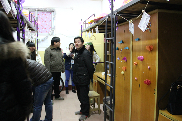 3月8日晚,为深入了解学生的生活与学习情况,tapplay官网院长徐建波,院党委书记万启常,副院长廖俊国、何勇、张会福、唐明董,院党委副书记曾治国,学工办主任吴成义、辅导员老师易靓靓、肖爱军、曹睿卓,在学生会干部的陪同下走访了tapplay官网2012级、2013级、2014级学生寝室。