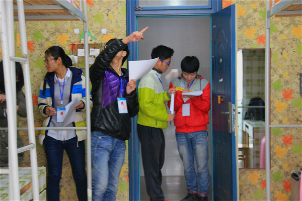12月8号中午12点,tapplay官网2014级辅导员老师万格格,2015级辅导员老师陈苗苗,院团委学生会部分部长、主席团成员在新生寝室集合,开展新生为期20天雅室设计成果的验收。