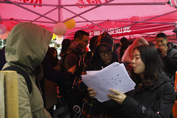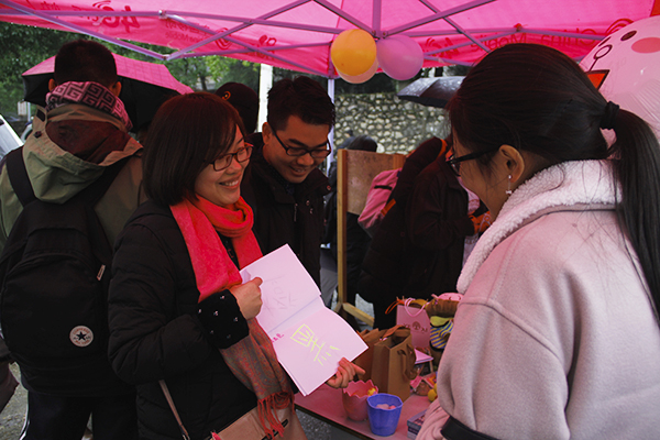 伴着蒙蒙细雨,一顶顶红色帐篷前围满了各学院前来参加活动的同学们。惊险刺激的“听气球的话”、趣味横生的“你演我猜”、考验反应力的“到底什么颜色”等游戏吸引了大量的同学跃跃欲试。各种丰富的奖品更是给同学们带来了不少的惊喜和乐趣。现场气氛丝毫不受阴冷天气的影响,十分火爆,同学们热情高涨,不少同学高呼“太有趣了!”“这个活动我超满意!”。