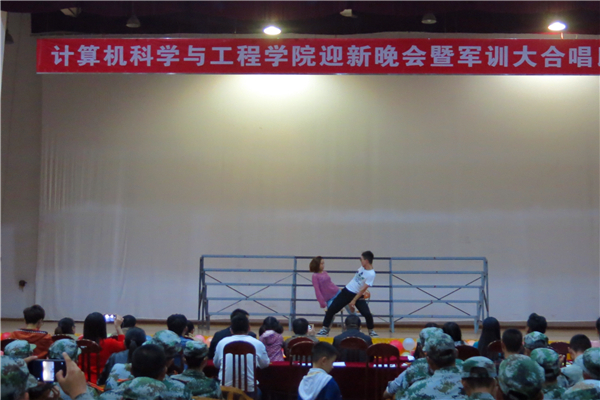 轮滑炫舞拉开了序幕,连长总结了这14天的军训生活,播放完记录着军训点滴的ppt后,军训大合唱比赛正式开始。从《好男儿就是要当兵》到《精忠报国》,从《黄河大合唱》再到《相亲相爱》,新生们用歌声诠释着坚毅、团结和奋斗。晚会尾声,助班们的T台秀点燃了全场的气氛,新生们挥舞着荧光棒,沉浸在这欢乐的时刻。