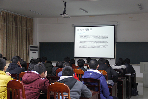 廖凯航在讲坛中针对同学们在平常生活中使用电脑所遇到的问题进行了分析,并讲解了电脑系统重装和常见故障维修等相关知识。他分析道:"凡是我们所遇到与电脑有关的问题,百分之八十能够通过系统重装解决。"随后他现场演示了系统重装的全过程,并对每一个步骤进行了详细的操作和分析。同时,他也对在场的同学们推荐了一些实用性较强的软件用于配套电脑系统使用。在常见故障维修方面,他尤其针对驱动安装提出了建议,并科普了相关理论知识便于同学们理解。最后,洪泽才对电脑系统重装和常见故障维修等问题进行了总结,并就如何在电脑重装后进一步完善系统向同学们提出了宝贵的建议后,宣布讲坛圆满结束。