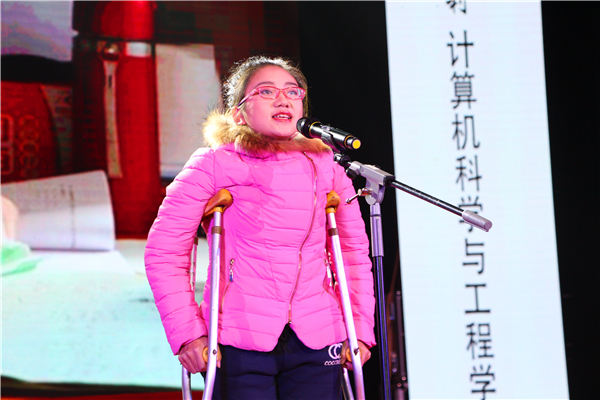 图为廖莎莉同学参加芳菲之歌决赛评选