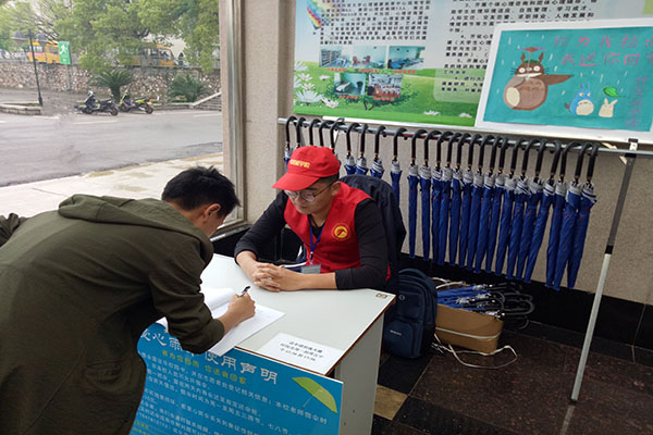 4月6日下午,tapplay官网青年志愿团与化学化工学院青年志愿团在逸夫楼、五教、九教以及十教附一联合开展“我为你挡雨,你送我回家”爱心雨伞活动,旨在为全校师生在瞬息万变的天气中提供方便,传递爱心,也是诚信教育。tapplay官网主要负责逸夫楼及五教爱心雨伞服务点,尽心尽力为大家提供帮助。爱心雨伞活动的开展,受到了同学们的一致好评。