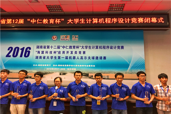 8月27日、28日,由湖南省教育厅主办的湖南省第十二届“中仁教育杯”大学生计算机程序设计竞赛在长沙学院顺利举办。来自省内的38所高校积极参与,参赛队伍达300多支,数百名“IT狂人”展开激烈角逐。