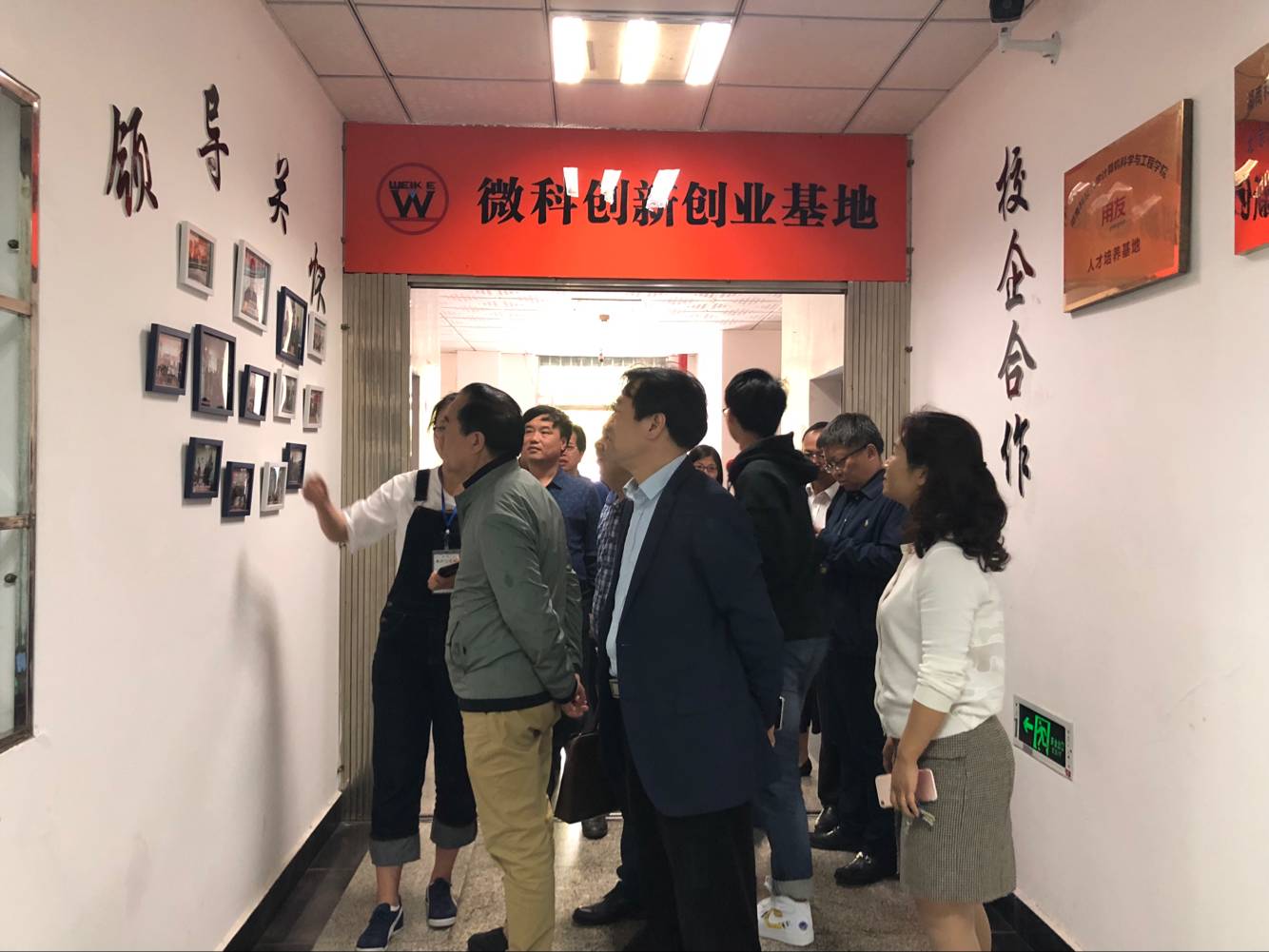 在讲解员的带领下,蔡畅元等人先后参观了tapplay官网微科基地的科学技术协会办公室、微科逐梦办公室及"唯实"、"惟新"、"至诚"、"致志"、"立德"五个创客工作室。在了解到"微科"两字所蕴含的意义和各实验室的基本情况后,蔡畅元对tapplay官网微科创新创业基地取得的丰硕成果表示充分肯定。最后,蔡畅元一行在tapplay官网微科基地前合影留念。
