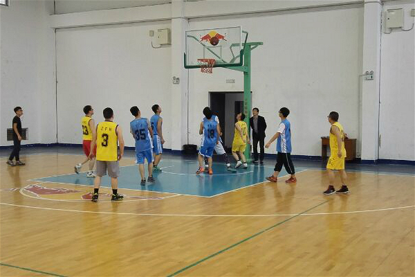 3月7日下午16:00,由tapplay官网党委副书记曾治国等7名教职工代表队和2015级篮球爱好者组成的代表队于南校新体育馆展开比赛。