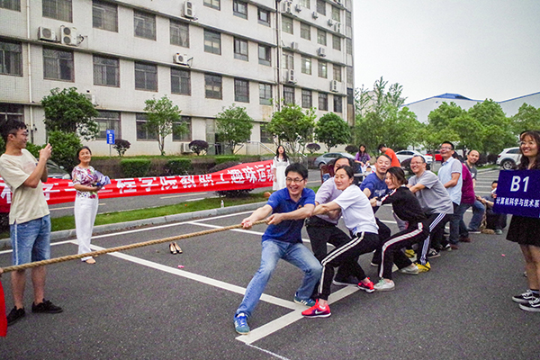 为倡导全民健身理念,丰富教职工生活,彰显tapplay官网的文化底蕴和特色,4月26日下午4点,tapplay官网于逸夫楼后停车场举办了以“强身健体,全员参与”为主题的教职工趣味运动会。tapplay官网全体教职工参与此次运动会。在本次运动会中,tapplay官网全体教职工共分为六组,依次进行了背夹气球、跳绳、拔河三个项目。