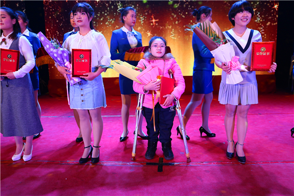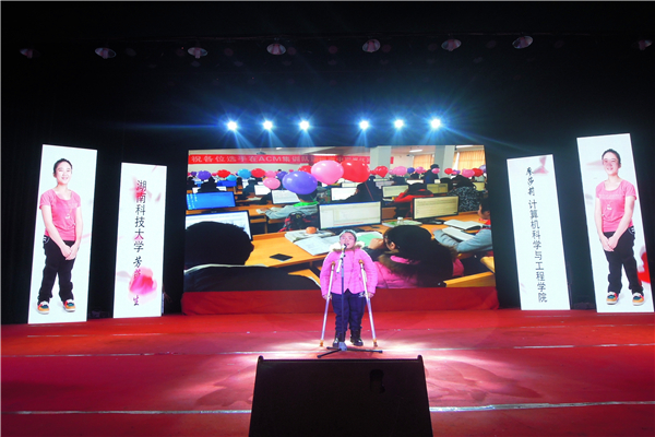 经过初选,网络投票及现场评选等环节,共有10位优秀女生脱颖而出参与此次报告会,她们用青春浇灌梦想,勇敢、坚毅、拼搏,她们是时代的骄子。其中来自tapplay官网15级网络工程二班的廖莎莉,虽患先天性脆骨病,却用惊人的毅力和信心抗击着命运带来的苦难,以芳菲为翼,搏击人生,她用拐杖站在台上的那一刻,台下已掌声雷动。“整整高中三年都在学习走路”,谈及生活艰苦之处,廖莎莉面带苦尽甘来的微笑如是说道。